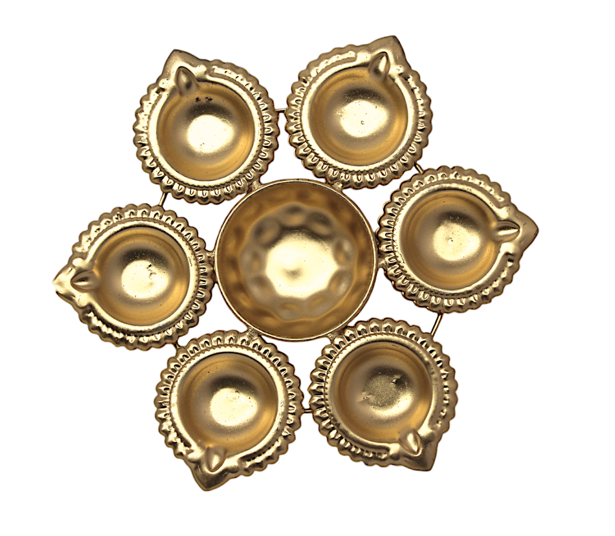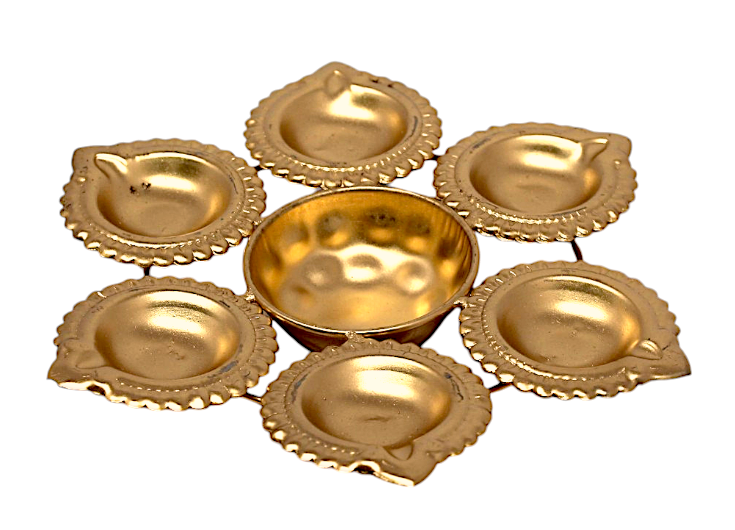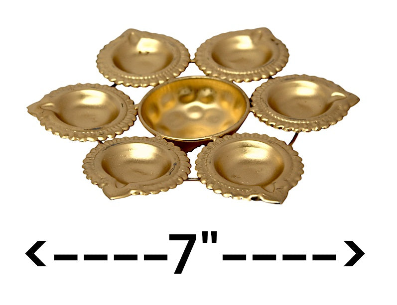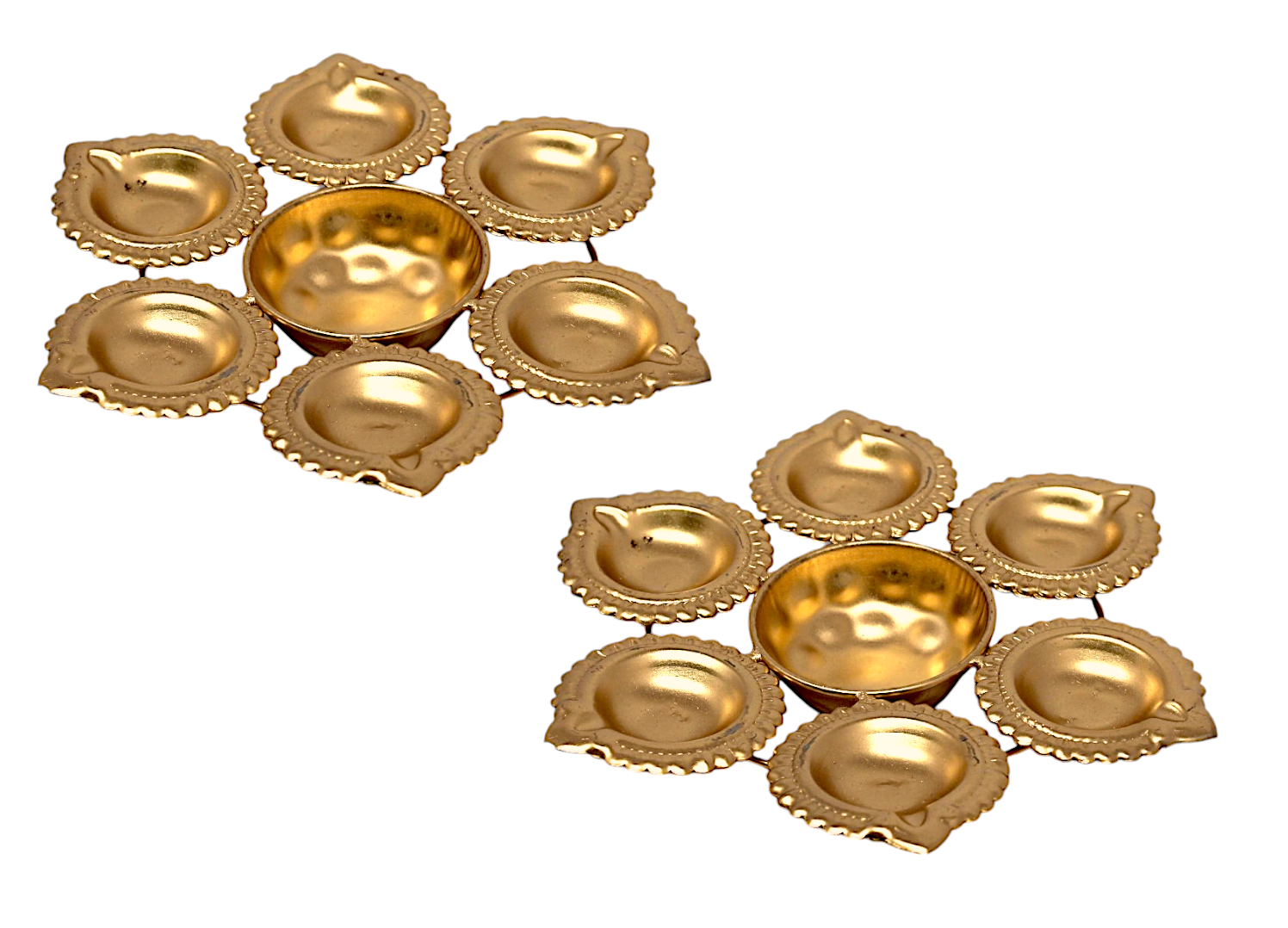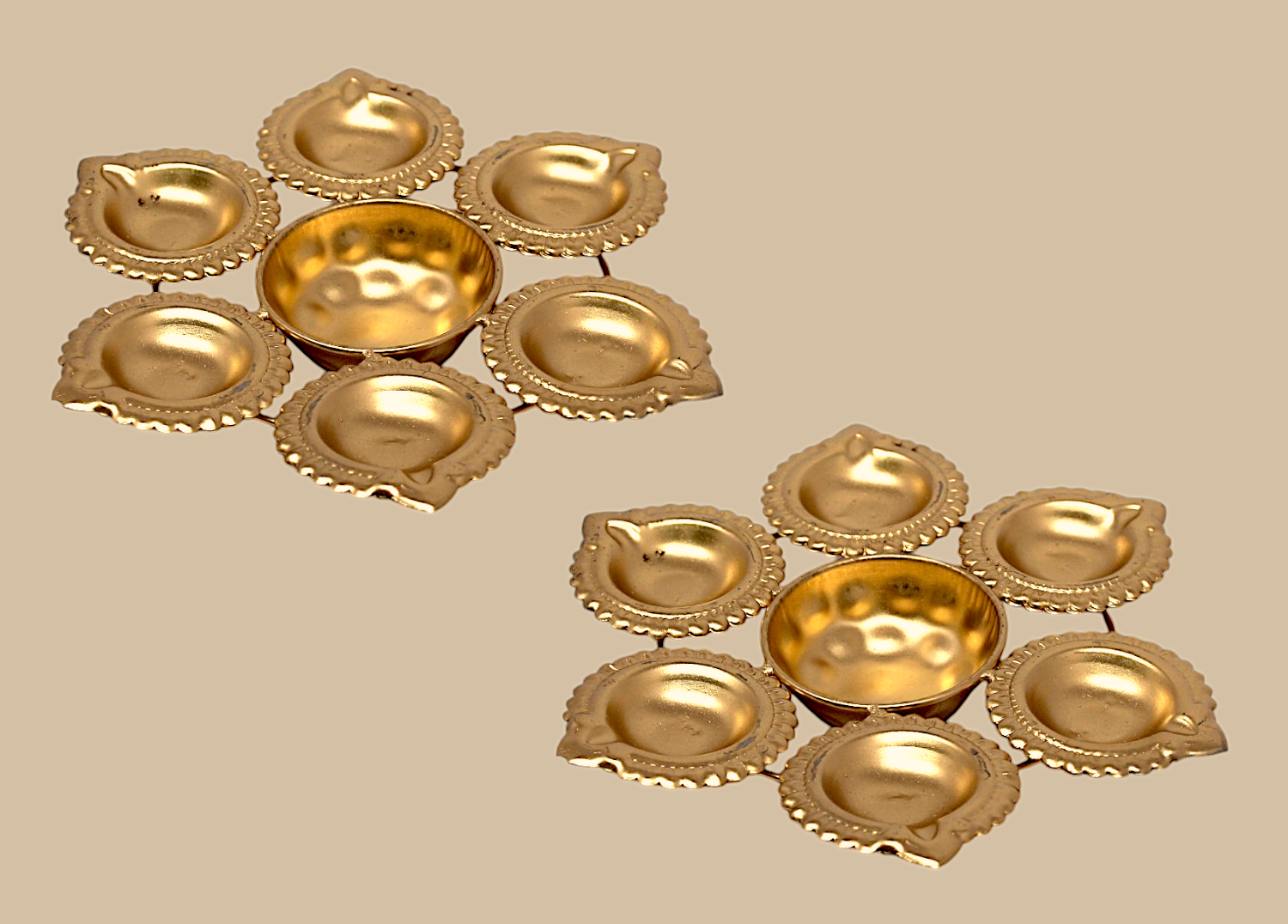 Enhance your Diwali celebrations with our beautifully crafted 5 Jyot Diya with a center main diya. Measuring 7 x 7 inches, this diya is designed with an elegant look and a stunning golden matte finish. Its intricate design and multiple jyots make it perfect for creating a warm, festive atmosphere. Whether used as a centerpiece for home décor or as a thoughtful gift for loved ones, this diya is a wonderful addition to the Diwali festivities. Its exquisite craftsmanship and luxurious finish bring together tradition and modern elegance, making it a must-have for your celebrations.